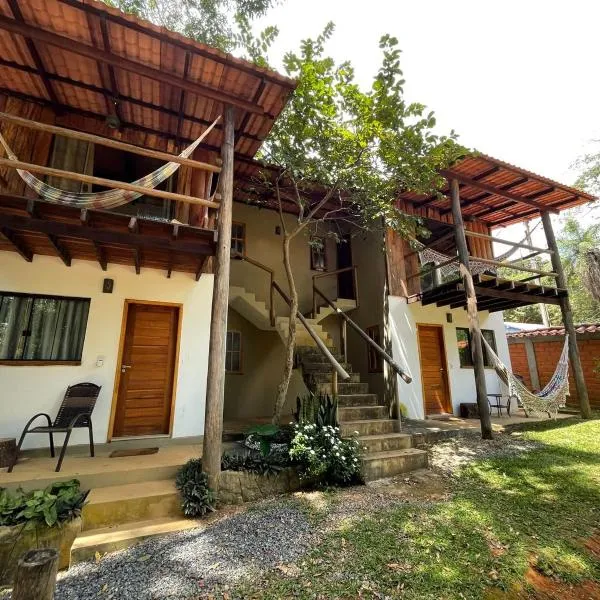 Villa Ágape - Chapada dos Veadeiros oferece um refúgio acolhedor em Alto Paraíso de Goiás, com sua varanda que revela uma vista encantadora do pátio interno. Desfrute de bicicletas gratuitas para explorar a natureza ao redor e relaxe com serviços de massagem, tornando sua estadia uma experiência única de descontração e bem-estar.